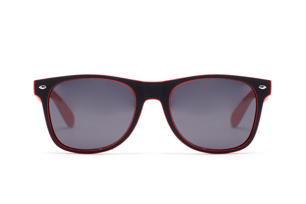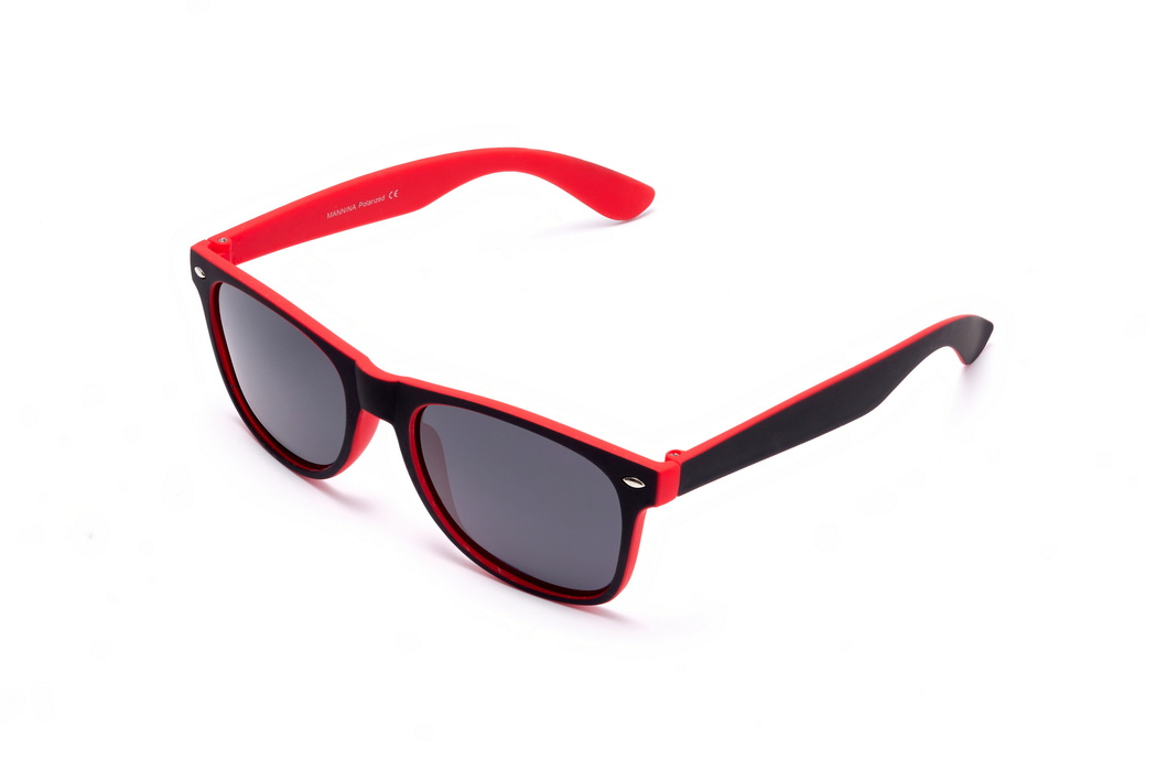 Ponadczasowe okulary przeciwsłoneczne męskie z polaryzacją, soczewka w kolorze czarnym,oprawka wewnętrzna w kolorze czerwonym.Wykonane z wysokiej jakości matowego plastiku.
