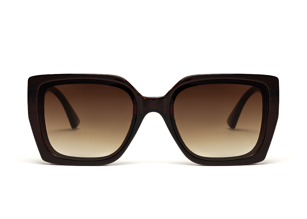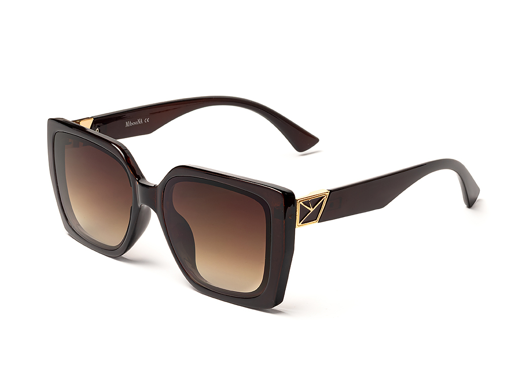 Kwadratowe okulary przeciwsłoneczne w kolorze brązowym.Element dekoracyjny na zauszniku.