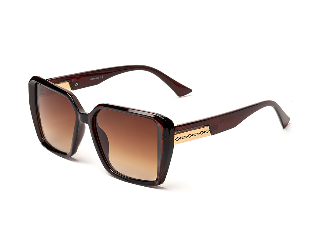 Klasyczne okulary przeciwsłoneczne w kolorze brązowym.Metalowe zdobienie na zauszniku.