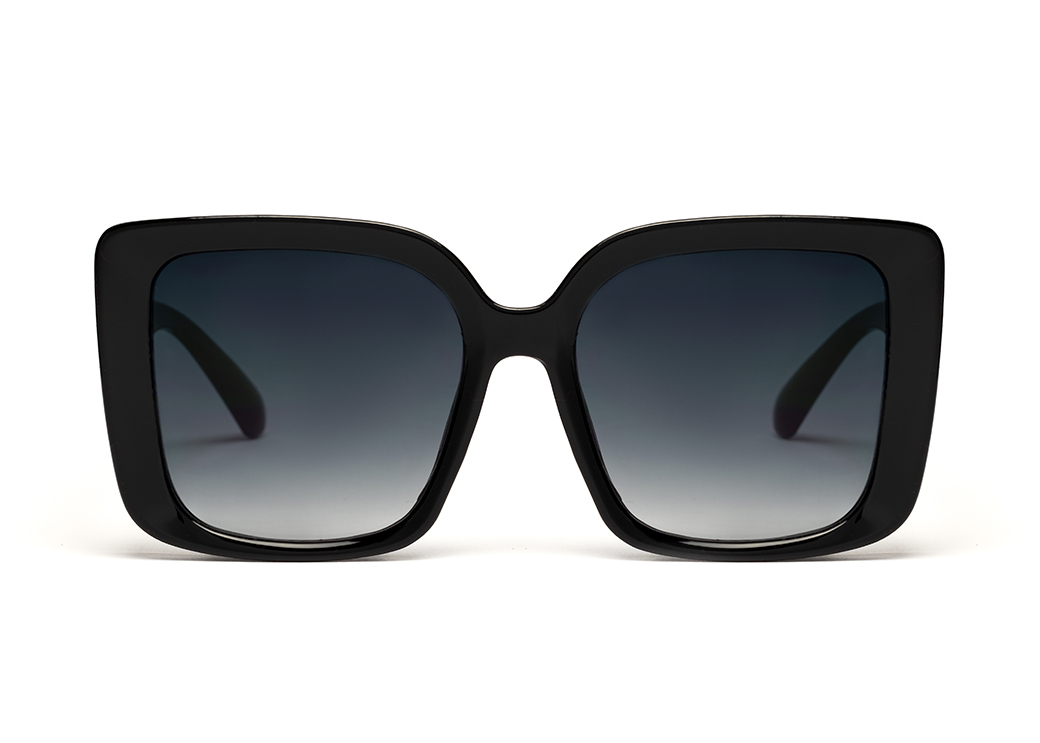 Duże klasyczne okulary przeciwsłoneczne w kolorze czarnym.Elegancki metalowy motyw na zauszniku.