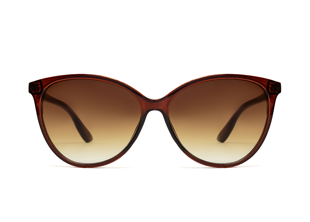 Okulary przeciwsłoneczne o kształcie "kocie oko" w kolorze brązowym.