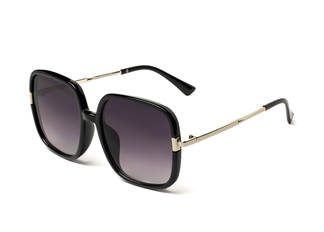 Duże,kwadratowe okulary przeciwsłoneczne w kolorze czarnym.Delikatny, metalowy zausznik.