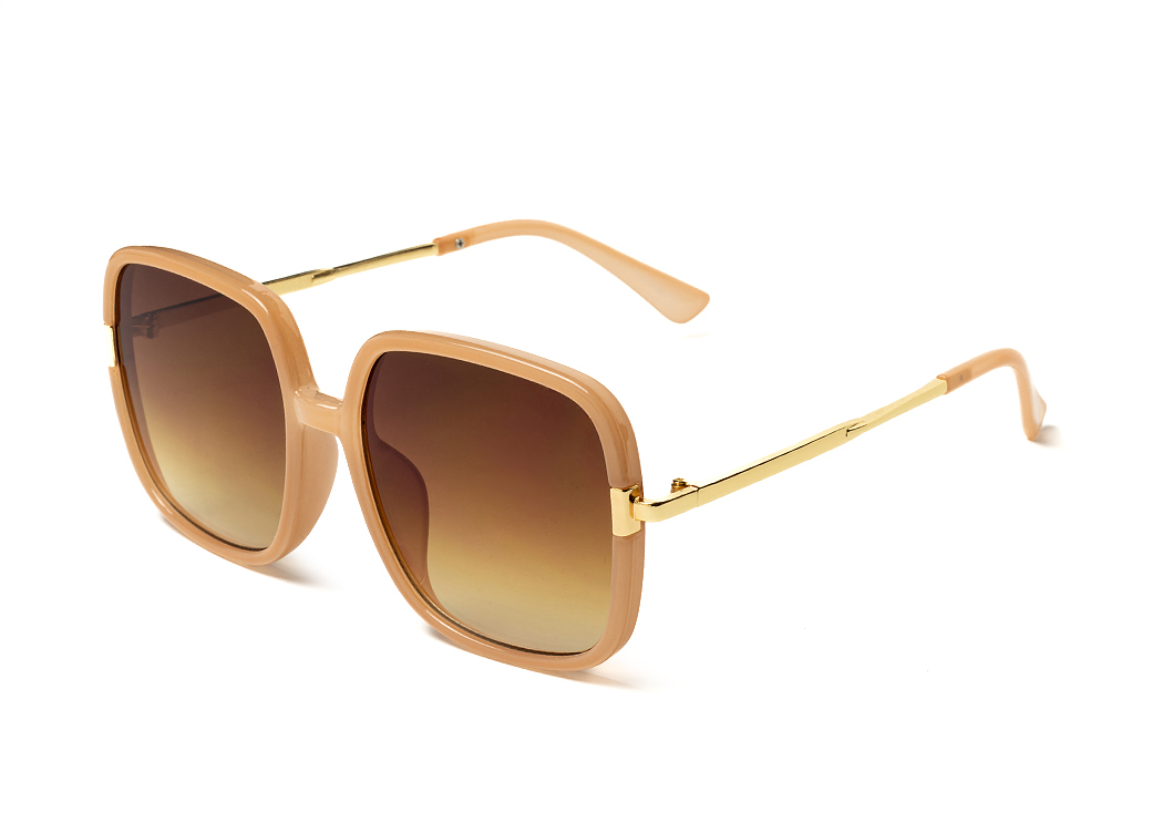 Duże,kwadratowe okulary przeciwsłoneczne w kolorze beżowym.Delikatny, metalowy zausznik.