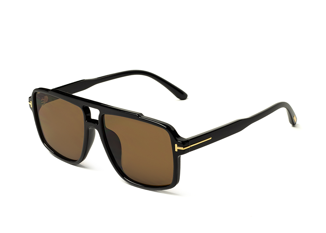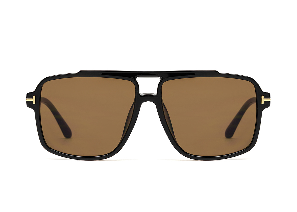 Okulary przeciwsłoneczne typu "aviator" w kolorze czarnym z brązową soczewką.Delikatny element dekoracyjny na zauszniku.