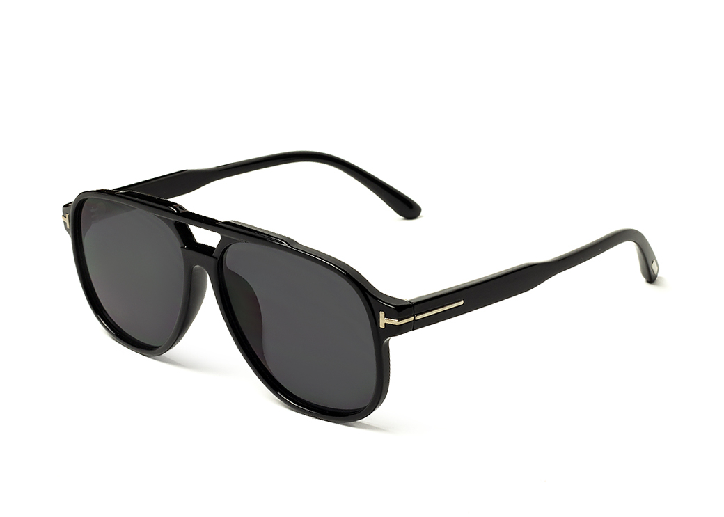 Okulary przeciwsłoneczne typu "aviator" w kolorze czarnym z ciemnoszarą soczewką.Delikatny element dekoracyjny na zauszniku.