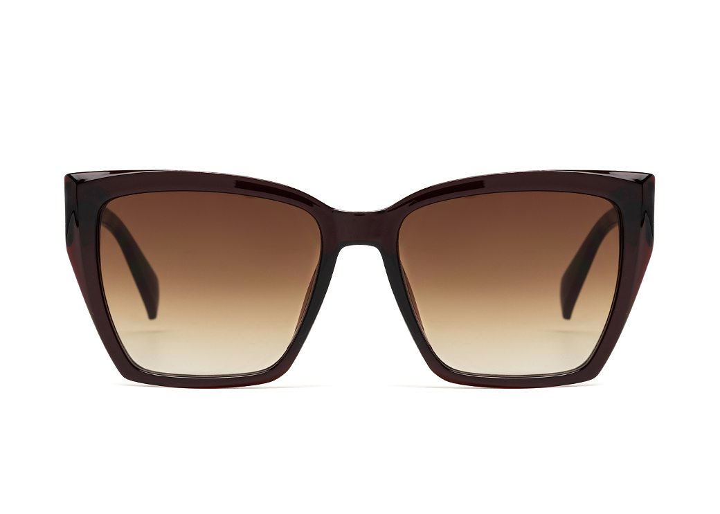 Duże,klasyczne okulary przeciwsłoneczne w kolorze brązowym.Szeroki,dwukolorowy zausznik.