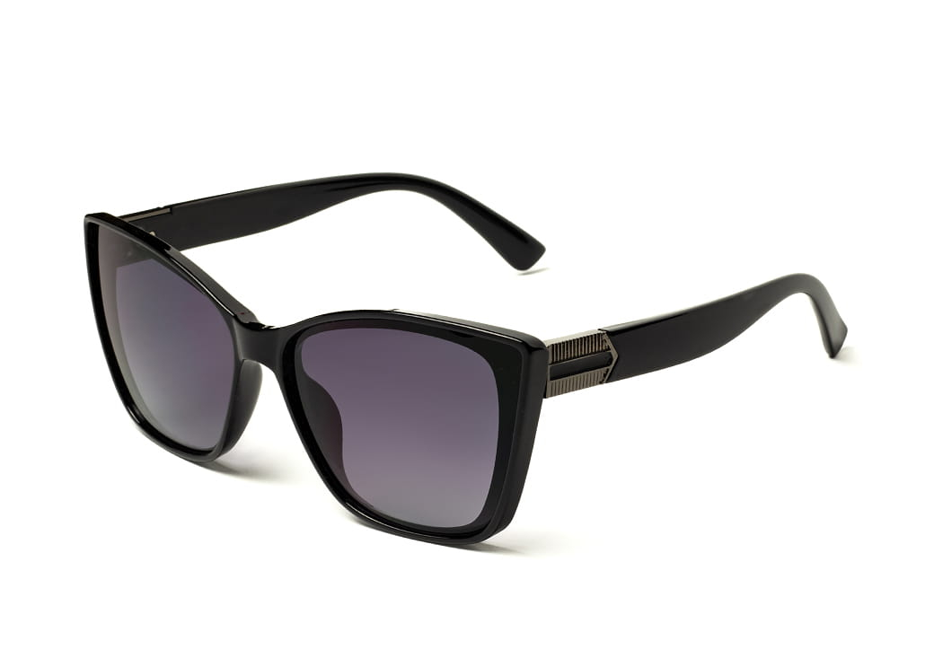 Klasyczne okulary przeciwsłoneczne w kolorze czarnym z polaryzacją.Gustowne metalowe zdobienie na zauszniku.