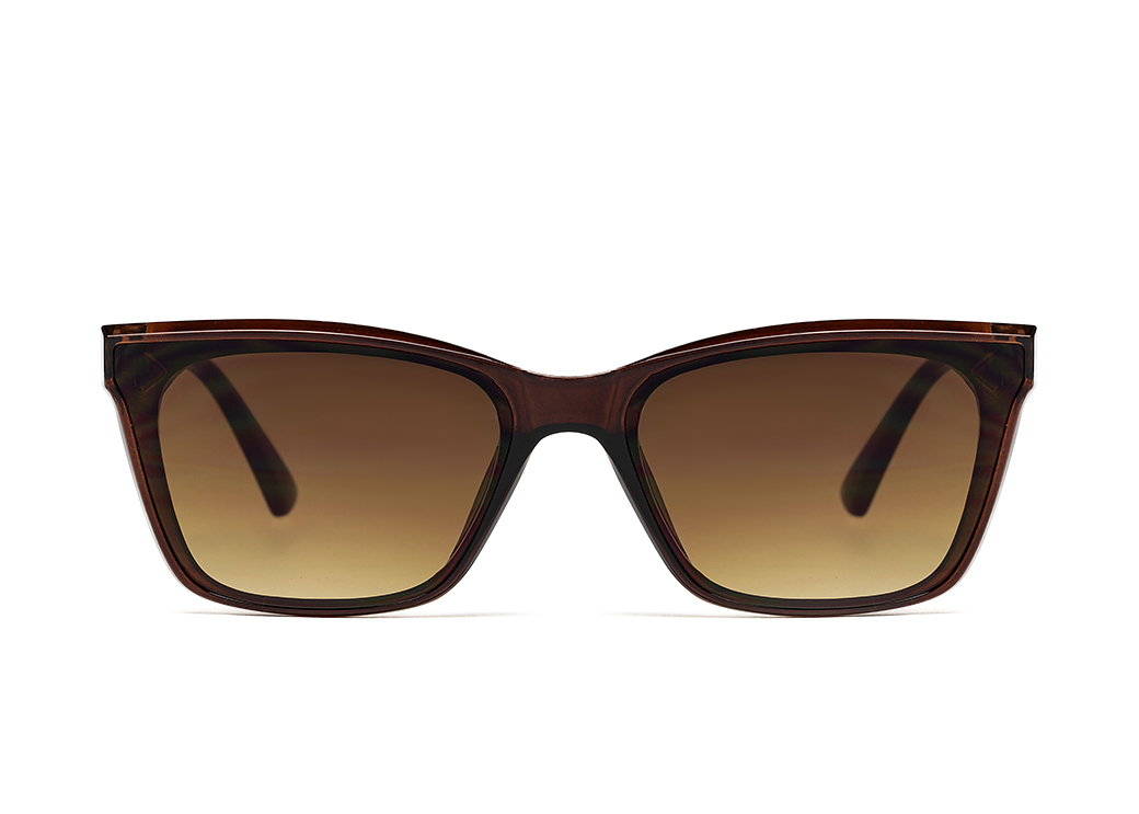 Klasyczne okulary przeciwsłoneczne w kolorze brązowym.Mały element dekoracyjny na zauszniku.