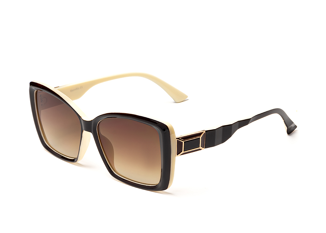 Klasyczne okulary przeciwsłoneczne w brązowo-beżowym.Eleganckie zdobienie na zauszniku.