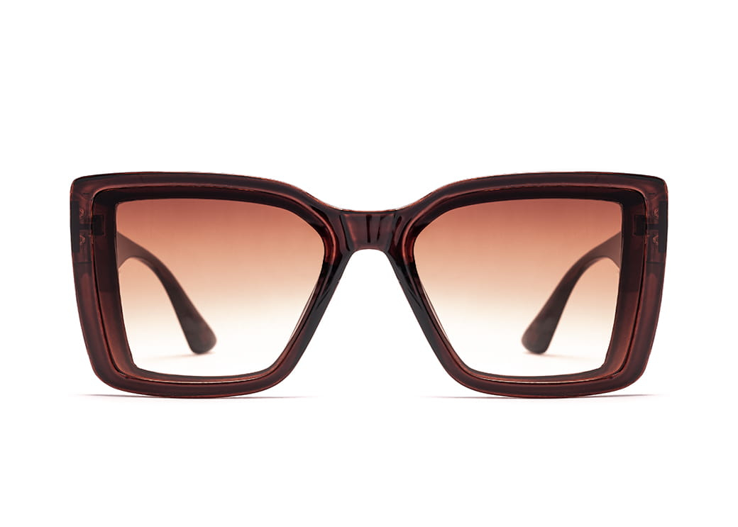 Duże,klasyczne okulary przeciwsłoneczne w kolorze brązowym.Element dekoracyjny na zauszniku.