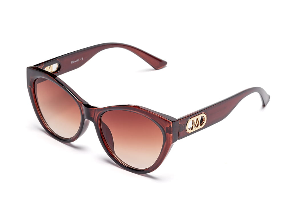 Okulary przeciwsłoneczne w kolorze brązowym o kształcie "kocie oko".Eleganckie zdobienie na zauszniku.