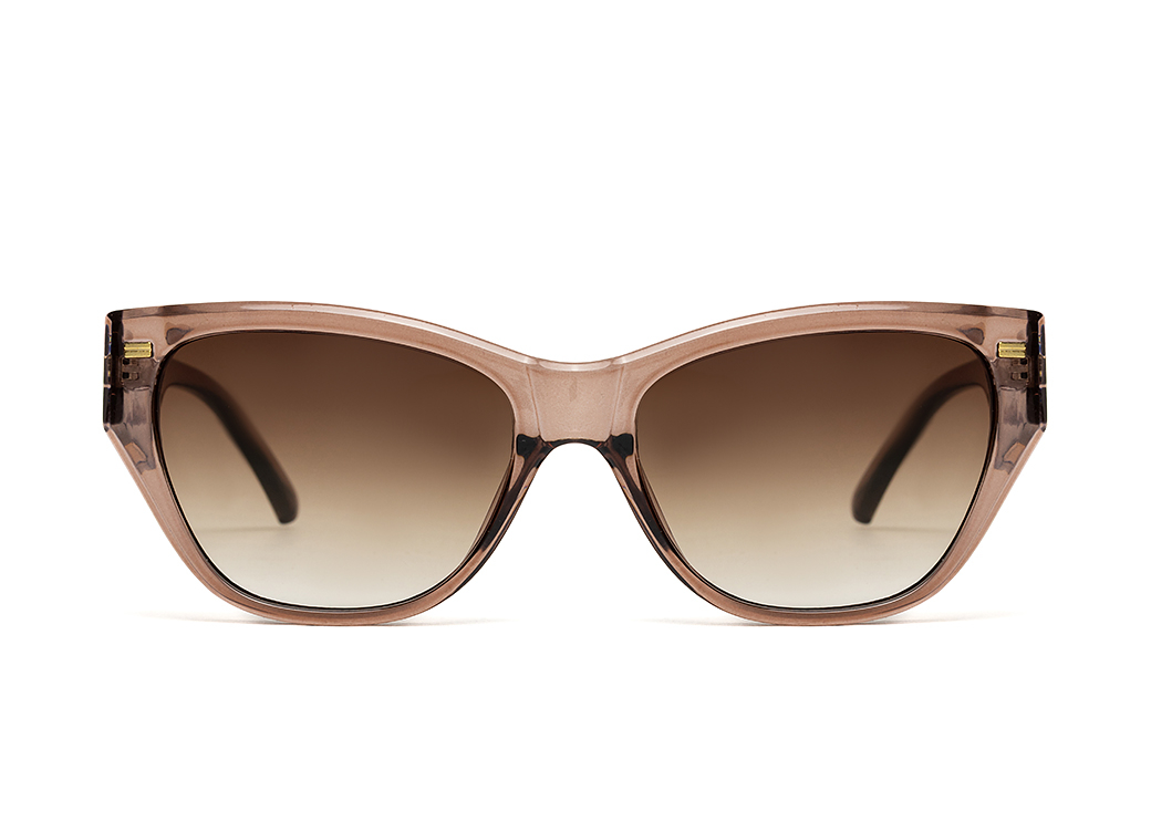 Klasyczne okulary przeciwsłoneczne w kolorze beżowym.Element dekoracyjny na zauszniku.