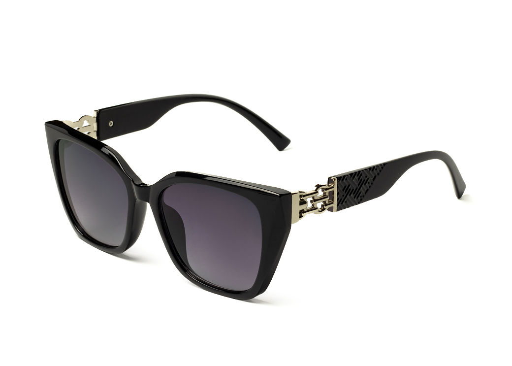Klasyczne okulary przeciwsłoneczne w kolorze czarnym.Elegancki element dekoracyjny na zauszniku