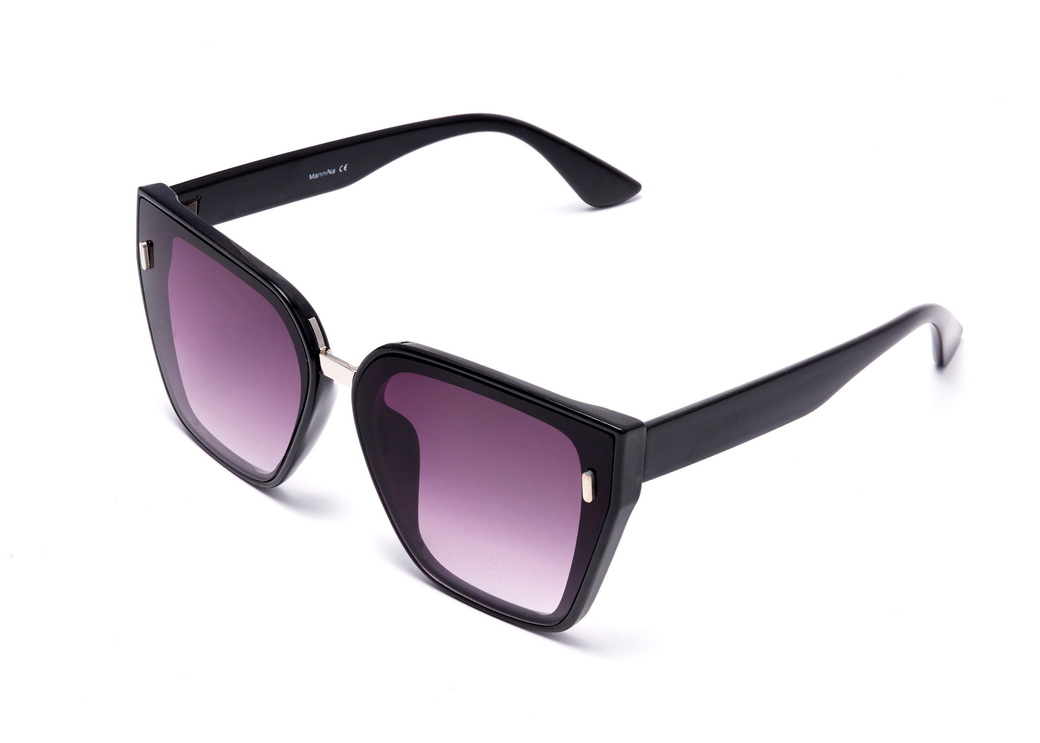 Duże,klasyczne okulary przeciwsłoneczne w kolorze czarnym.Lekkie zdobienie na froncie oprawki.
