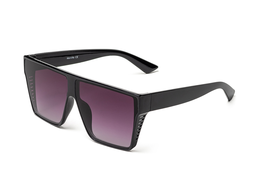 Duże okulary przeciwsłoneczne typu "Maska" w kolorze czarnym.