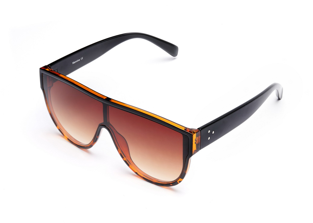 Duże okulary przeciwsłoneczne o kształcie "maska" w kolorze brąz panterka z czarnymi zausznikami.