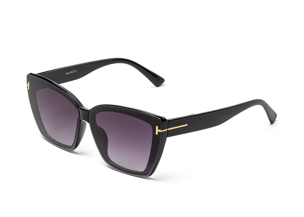 Klasyczne okulary przeciwsłoneczne w kolorze czarnym z delikatnym zdobieniem na froncie oprawki.