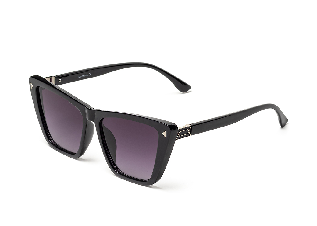 Okulary przeciwsłoneczne o kształcie "kocie oko" w kolorze czarnym.Lekkie zdobienie na froncie oprawki i zauszniku.