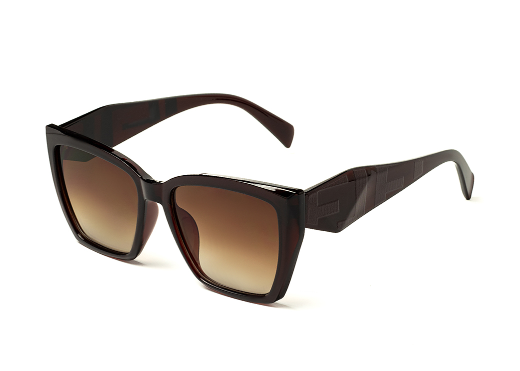 Duże,klasyczne okulary przeciwsłoneczne w kolorze brązowym.Szeroki,dwukolorowy zausznik.