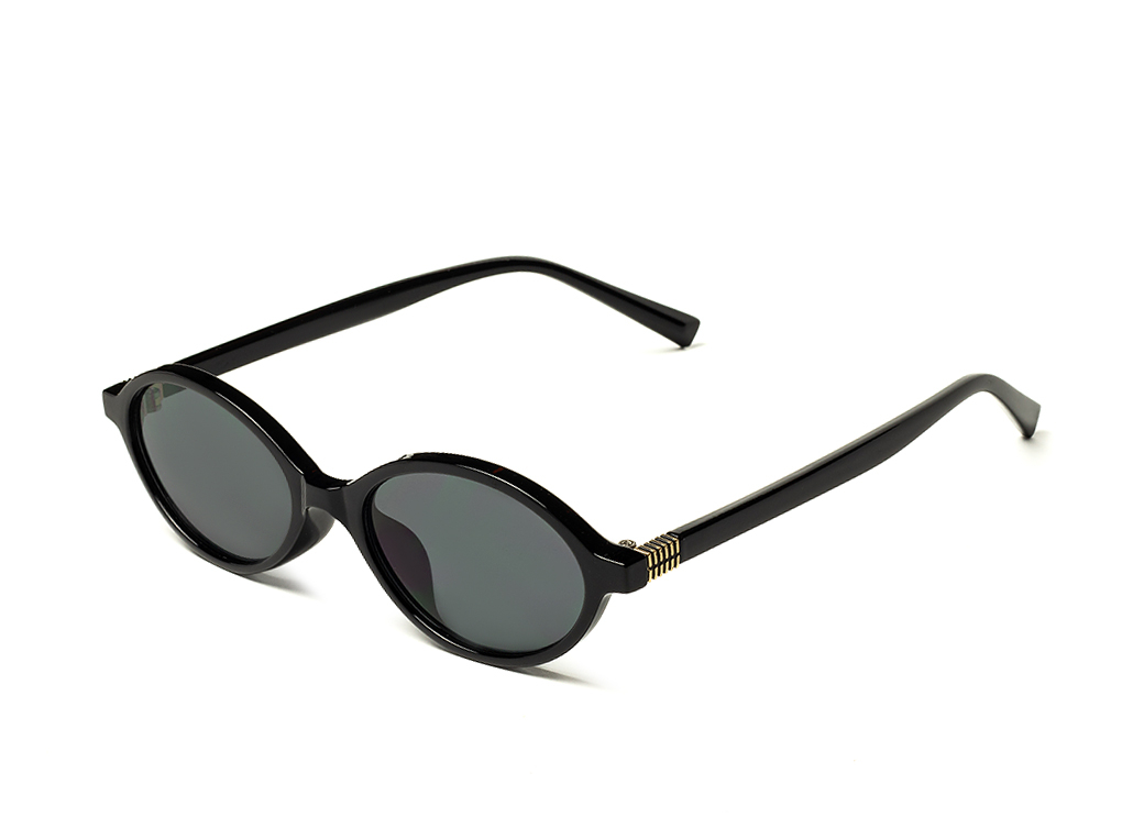 Małe okulary przeciwsłoneczne o modnym kształcie "jajeczko" w kolorze czarnym,soczewka ciemnoszara.Wykonane z lekkiego i elastycznego materiału TR90.
