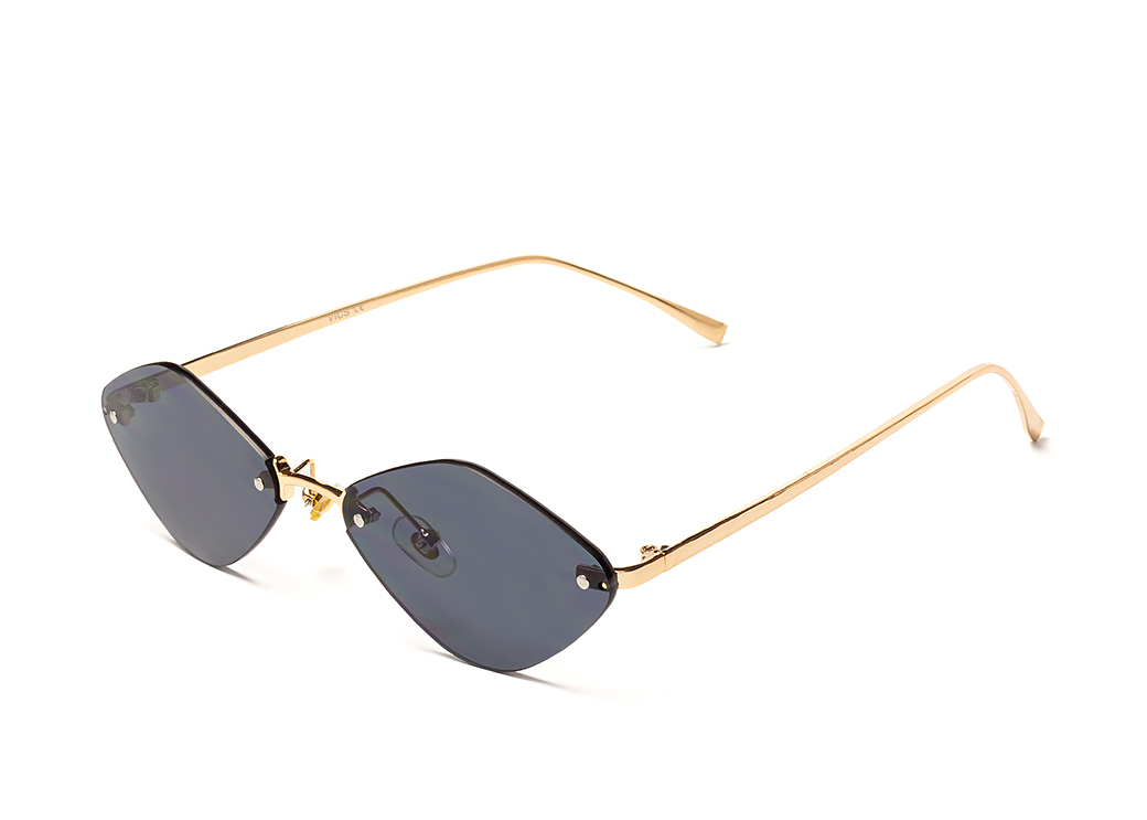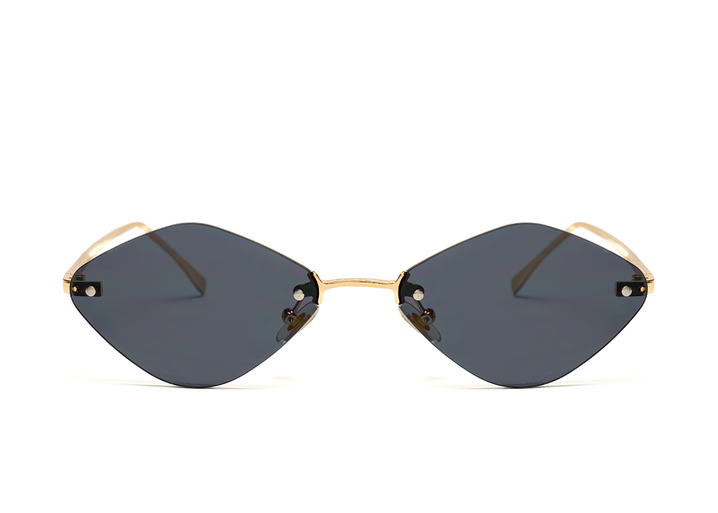 Lekkie okulary przeciwsłoneczne o geometrycznym kształcie z ciemnoszarą soczewką i metalowymi zausznikami.