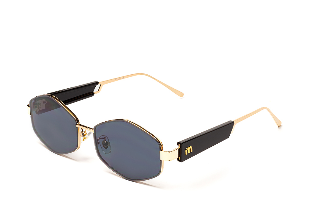 Metalowe okulary przeciwsłoneczne damskie o geometrycznym kształcie.Zausznik metalowy z elementem plastikowym w kolorze czarnym.