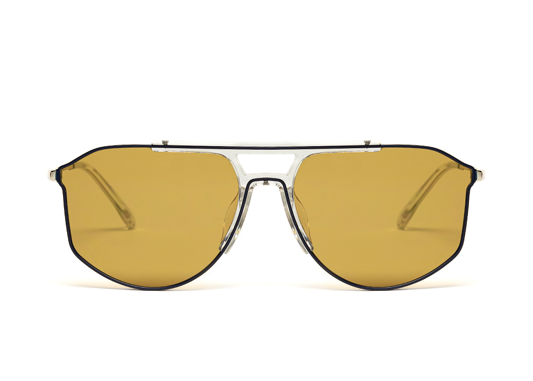 Delikatne metalowe okulary przeciwsłoneczne o kształcie aviator,soczewka w kolorze jasnobrązowym.