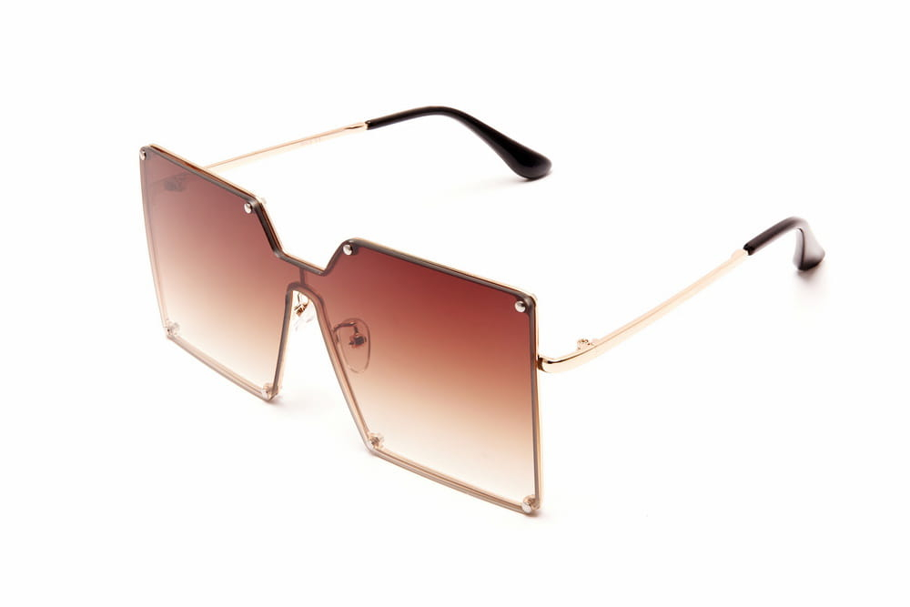 Duże,kwadratowe okulary przeciwsłoneczne, soczewka brązowa.Delikatny,metalowy zausznik.