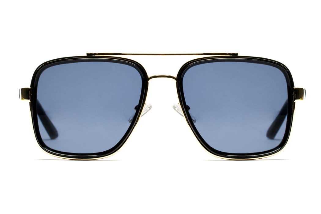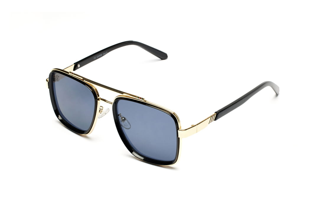 Eleganckie,metalowe okulary przeciwsłoneczne męskie, oprawka w kolorze czarno-złotym.