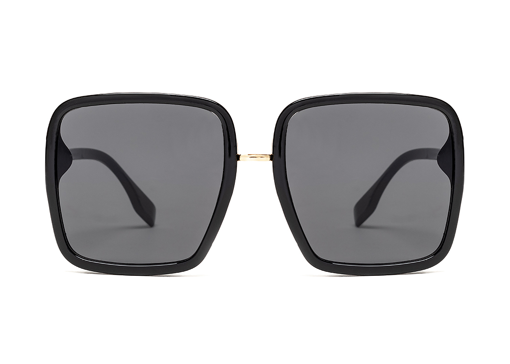 Duże okulary przeciwsłoneczne w stylu "Muchy",w kolorze czarnym.Delikatny metalowy zausznik.