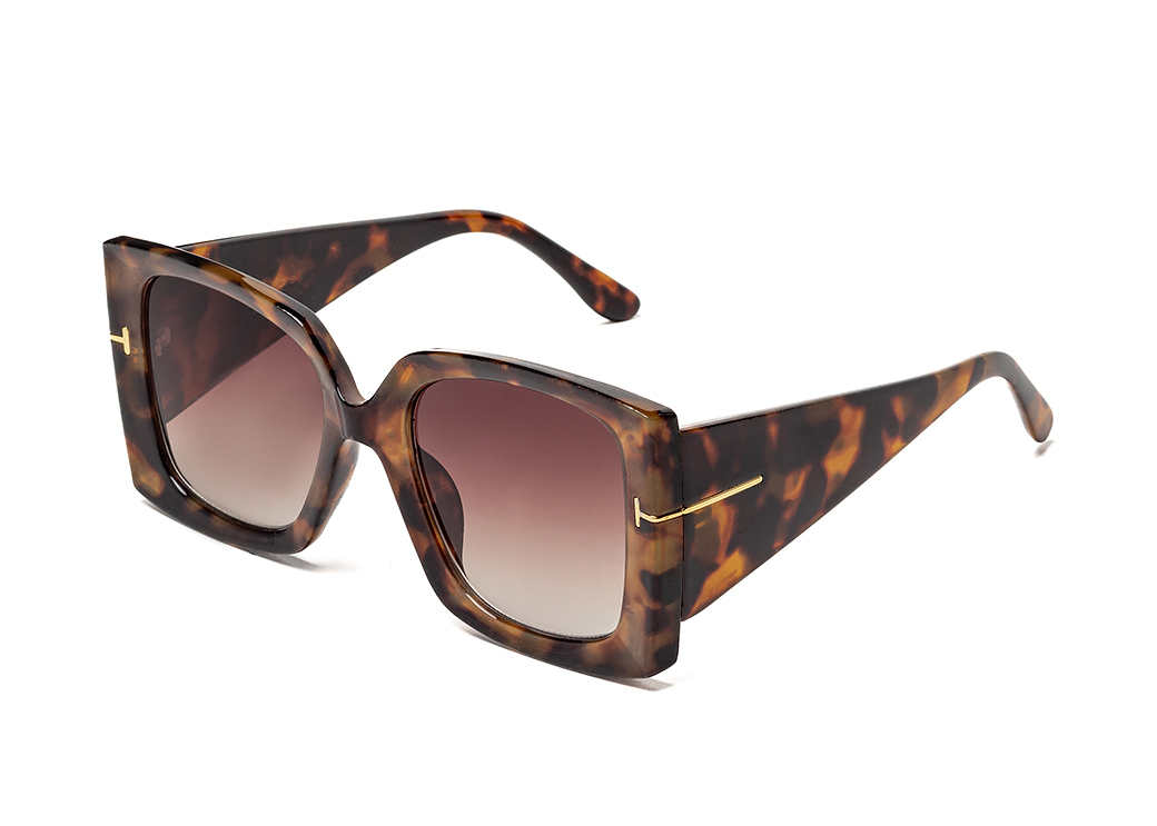 Duże okulary przeciwsłoneczne w kolorze brąz panterka z szerokim zausznikiem.