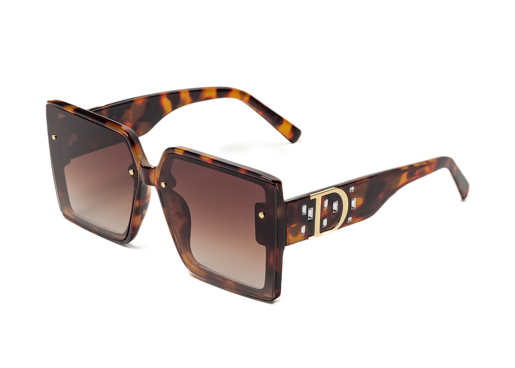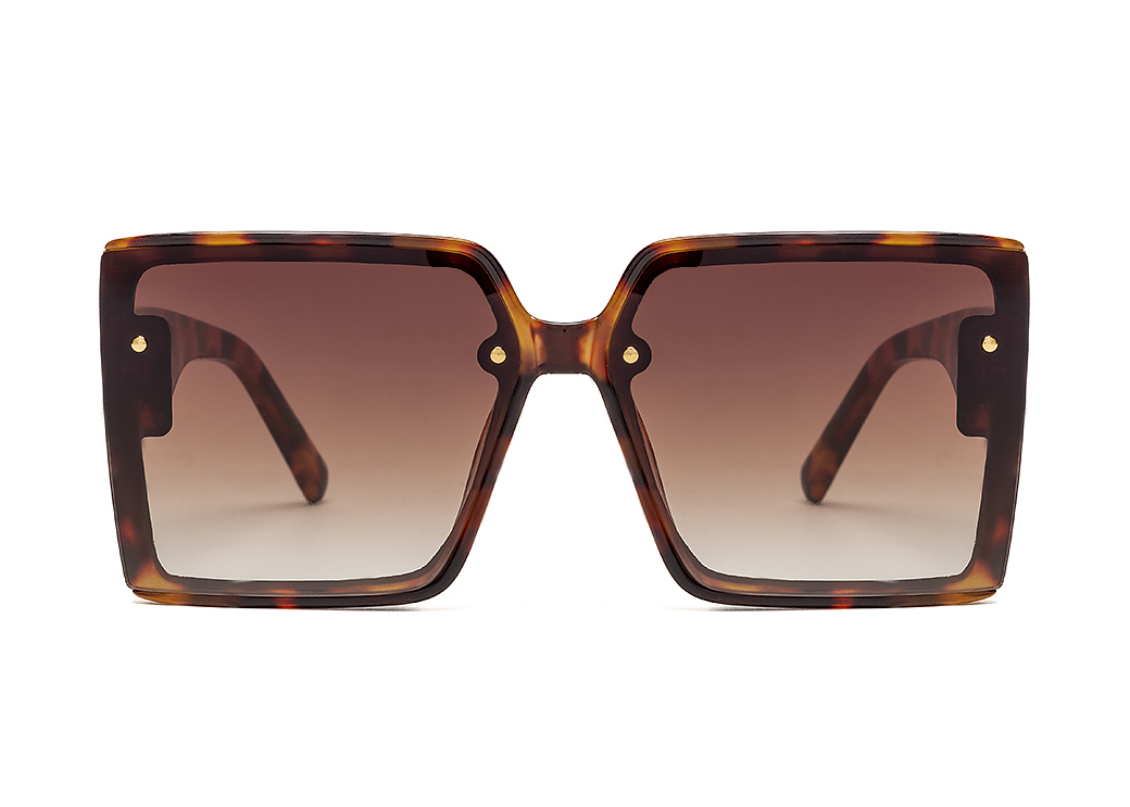 Duże,kwadratowe okulary przeciwsłoneczne w kolorze brąz panterka.Eleganckie zdobienie na zauszniku.