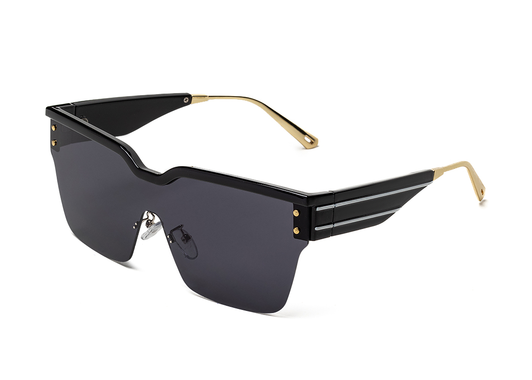 Okulary przeciwsłoneczne typu "maska" w kolorze czarnym.Delikatne zdobienie na zauszniku.