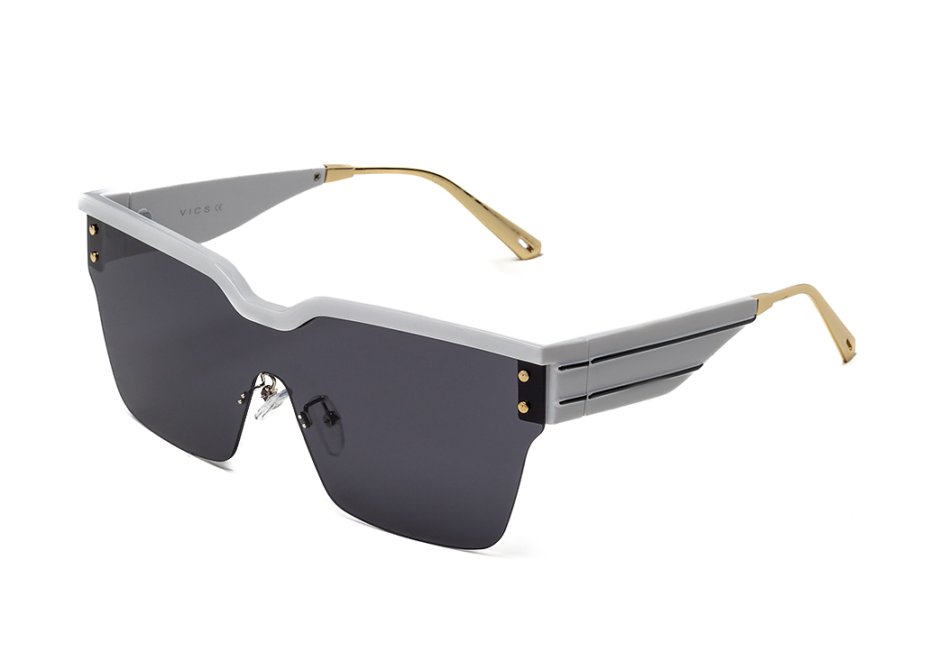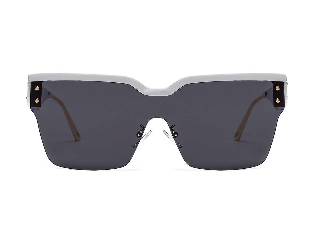 Okulary przeciwsłoneczne typu "maska" w kolorze białym.Delikatne zdobienie na zauszniku.