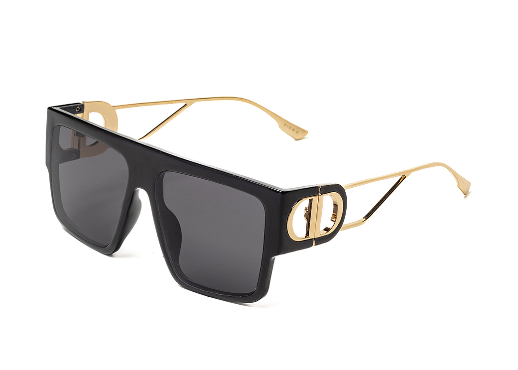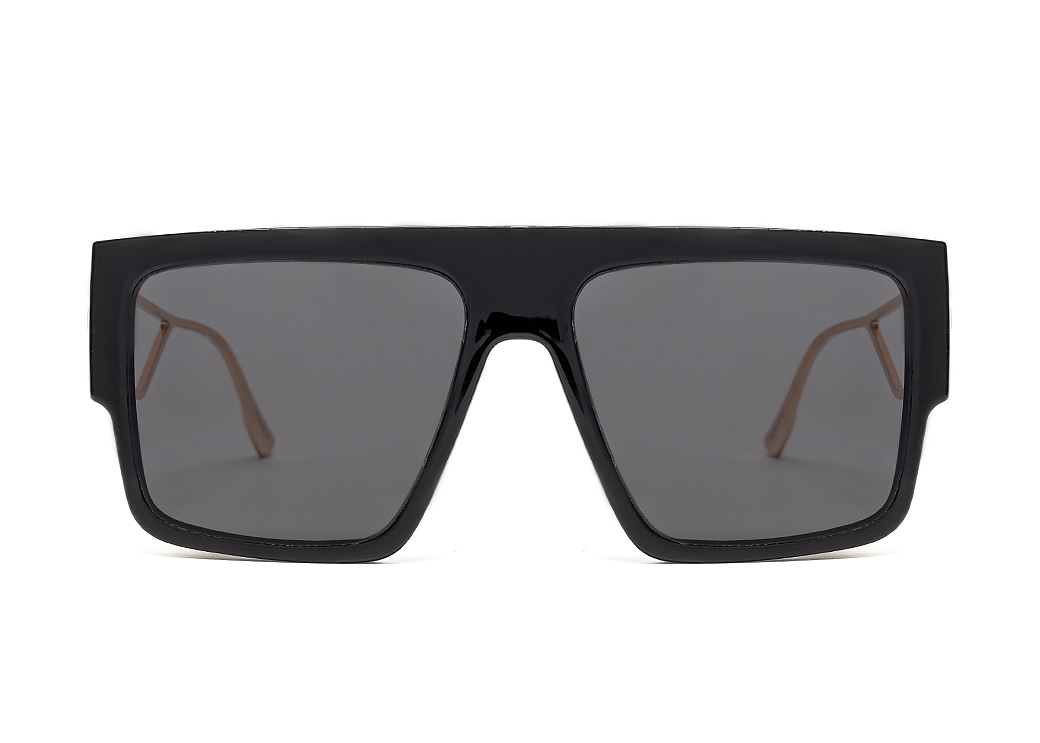Duże okulary przeciwsłoneczne o kształcie "Maska" w kolorze czarnym.Zausznik z eleganckim zdobieniem.