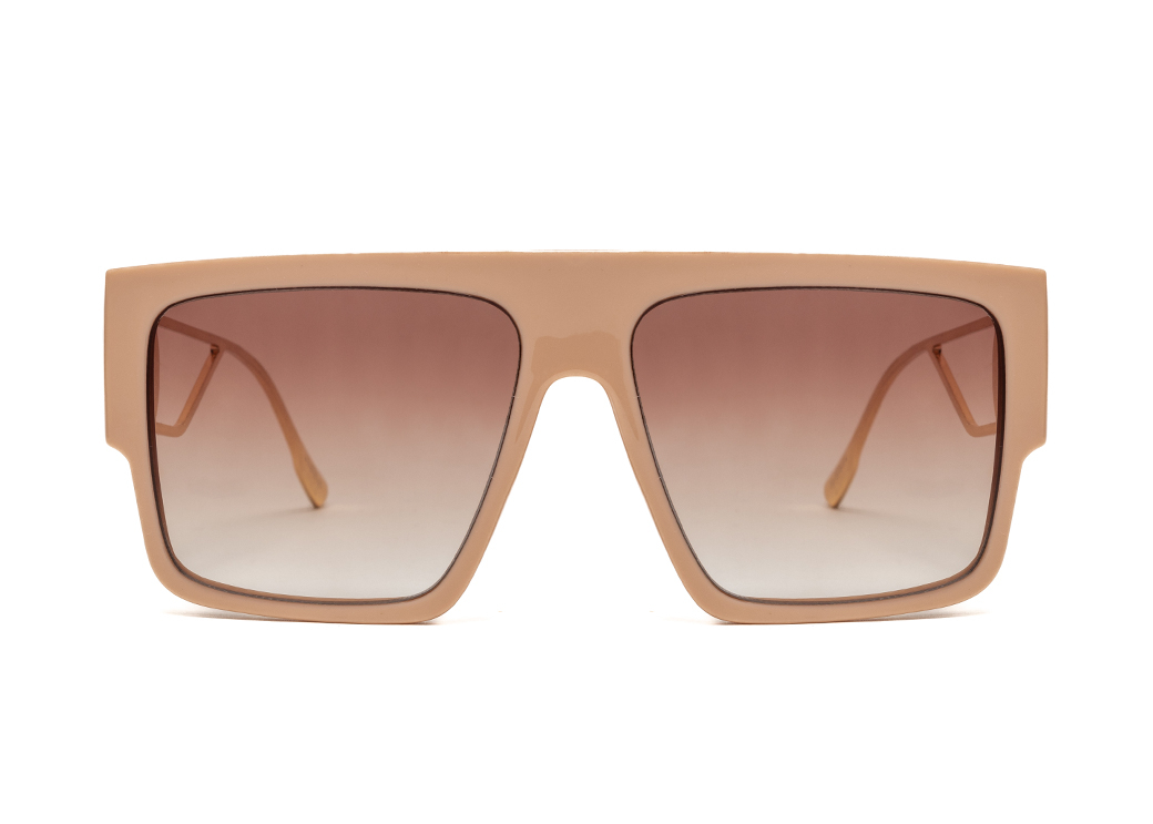 Duże okulary przeciwsłoneczne o kształcie "Maska" w kolorze beżowym.Zausznik z eleganckim zdobieniem.