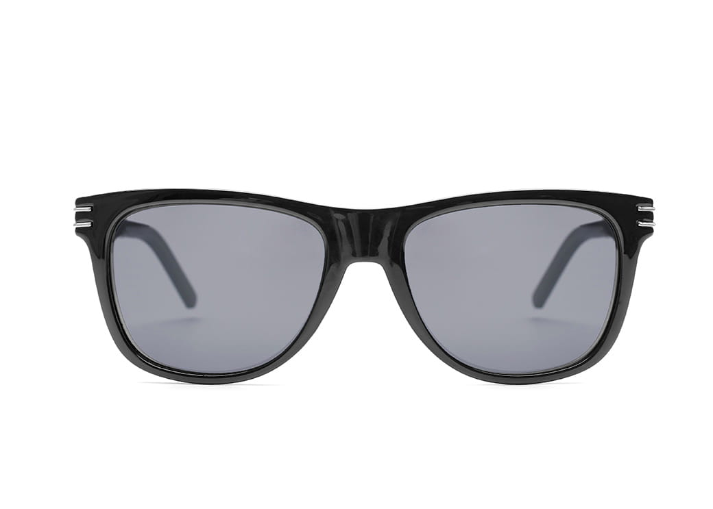 Klasyczne okulary przeciwsłoneczne z polaryzacją w kolorze czarnym,front błyszczący, zauszniki matowe.Wykonane z lekkiego i elastycznego materiału TR90.