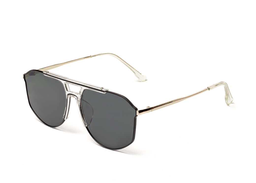 Delikatne metalowe okulary przeciwsłoneczne o kształcie aviator,soczewka w kolorze ciemnoszarym.
