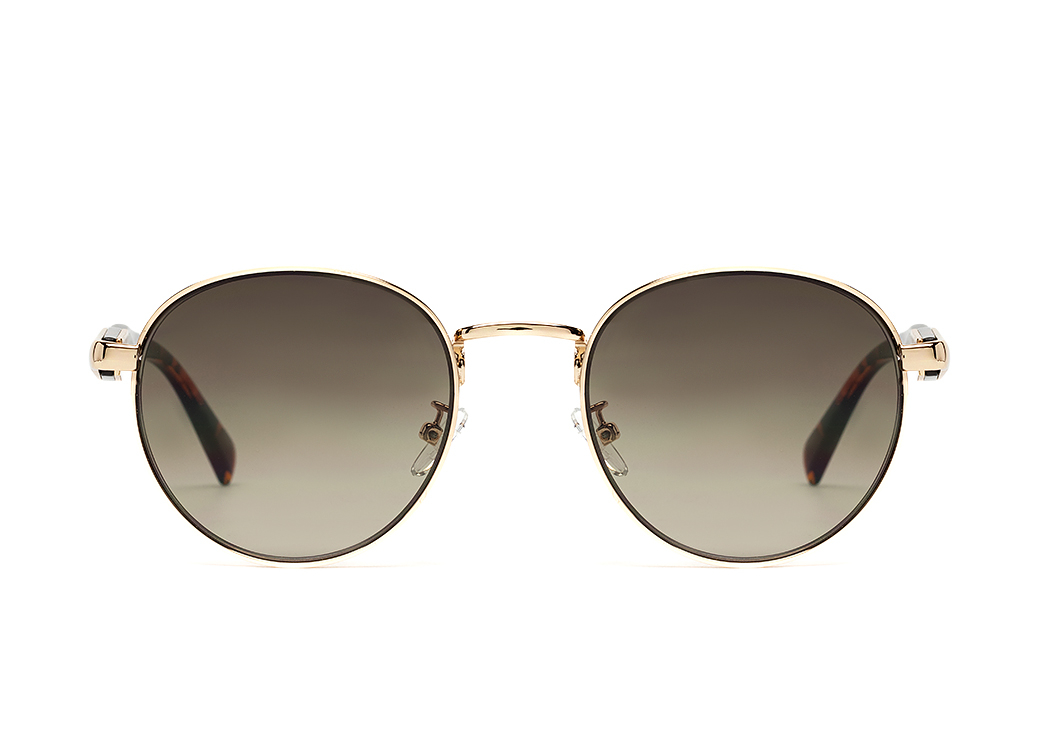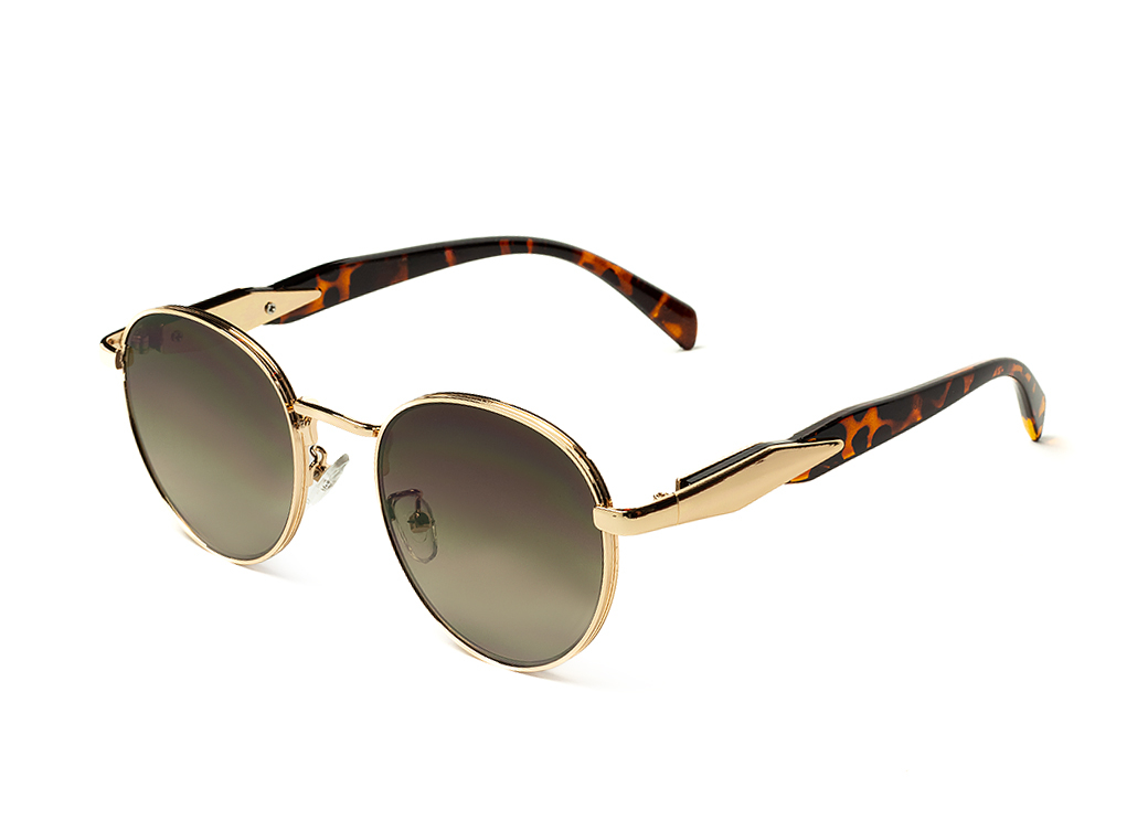 Owalne,metalowe okulary przeciwsłoneczne, soczewka brązowa.