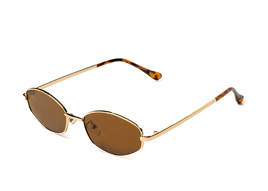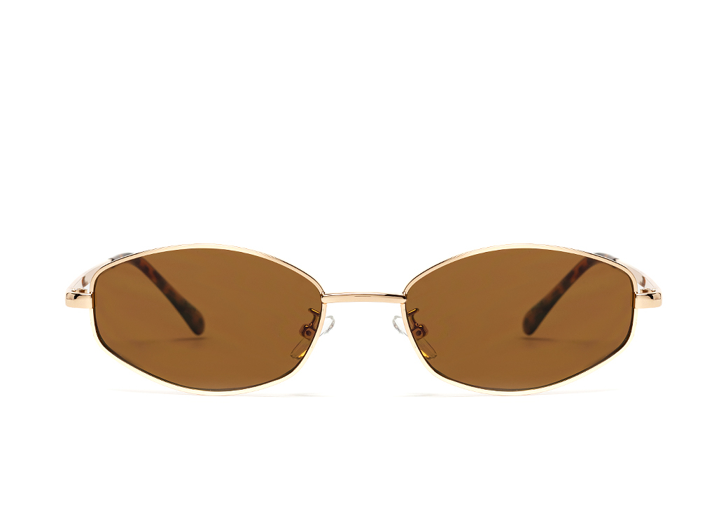 Okulary przeciwsłoneczne o owalnym kształcie,brązowa soczewka,metalowe zauszniki.