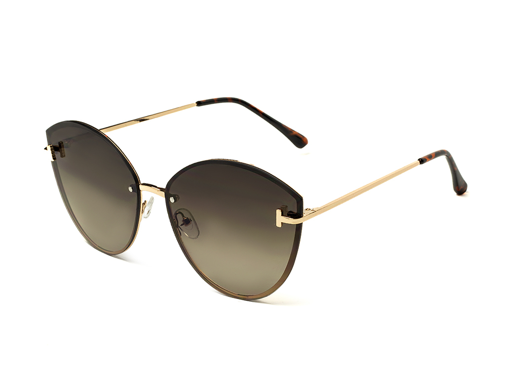 Duże metalowe okulary przeciwsłoneczne o kształcie "kocie oko",brązowa soczewka.