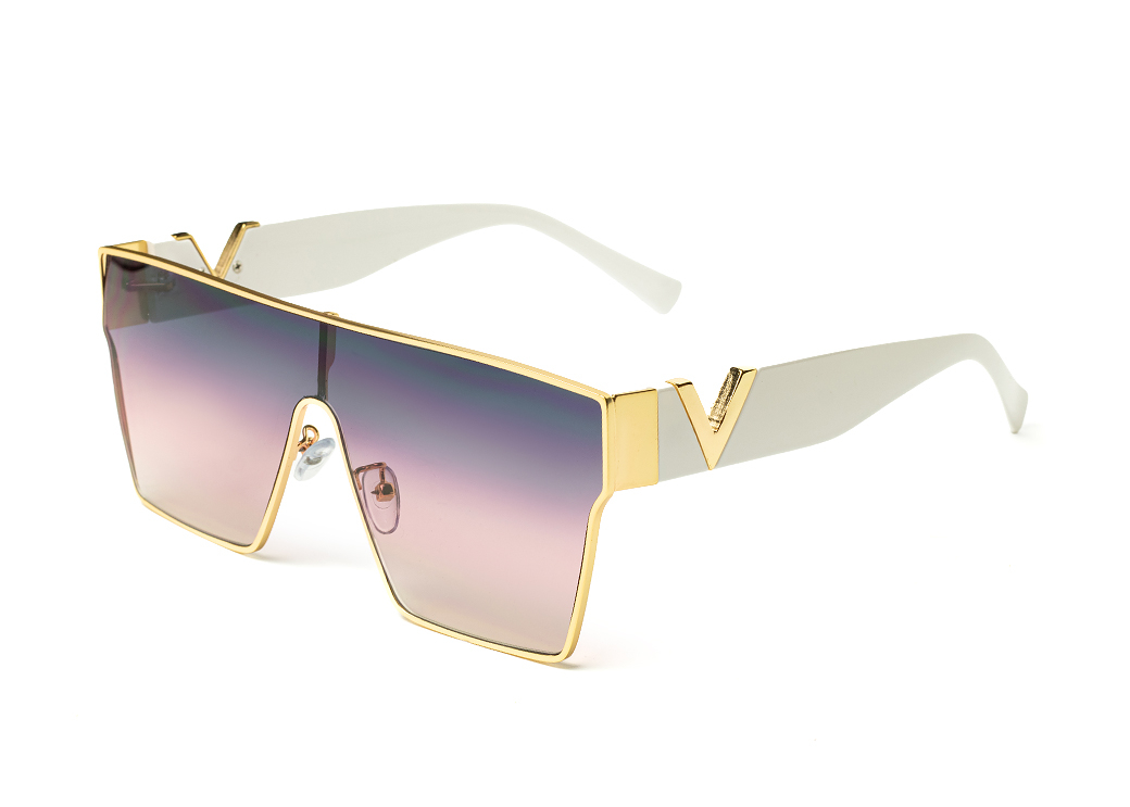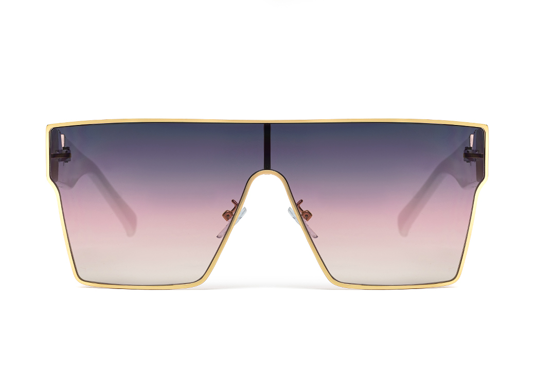 Metalowe okulary przeciwsłoneczne typu maska, soczewka w kolorze amarantowym.Eleganckie zdobienie na zauszniku.