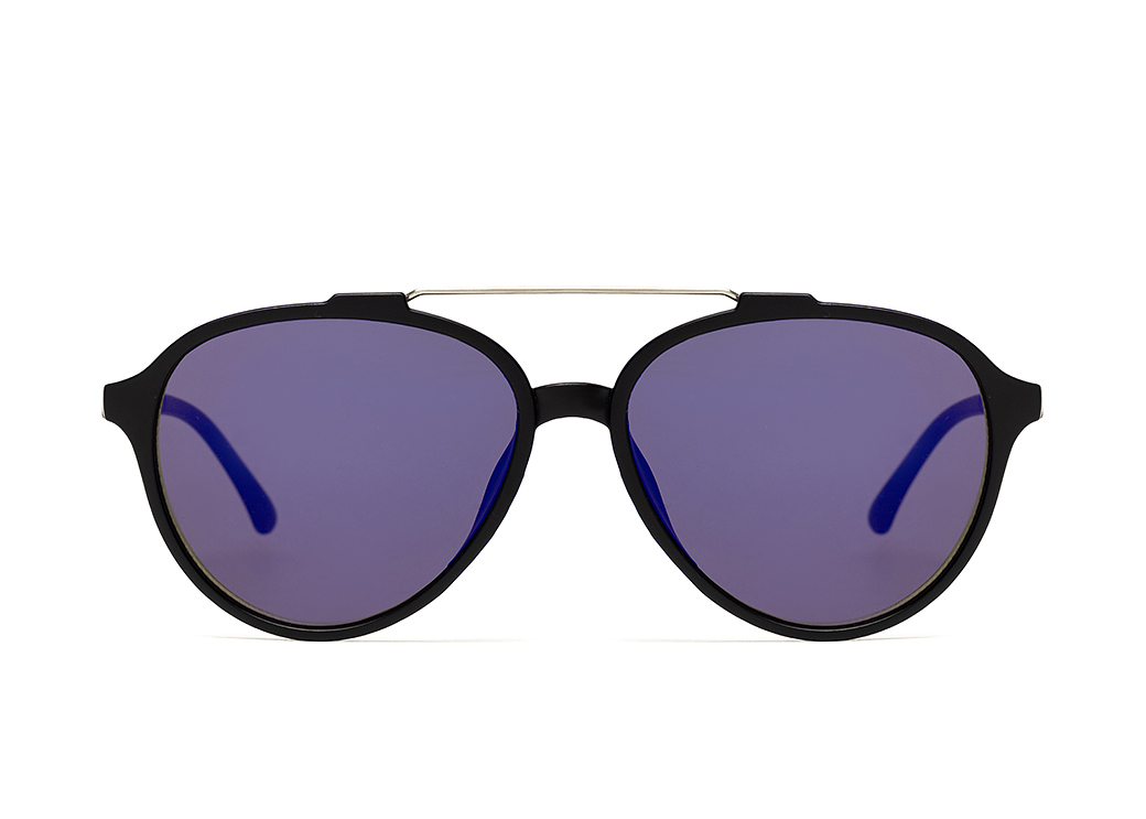Okulary pilotki w kolorze czarnym,soczewka niebieska.Wykonane z matowego plastiku.